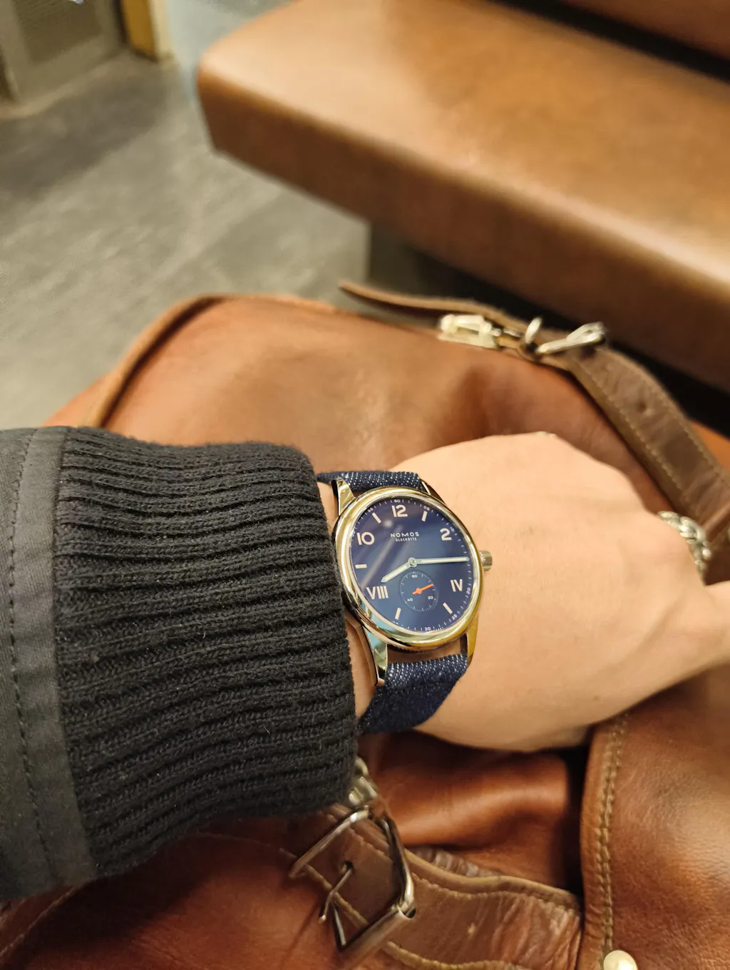 Jeans watch strap made of Japanese denim