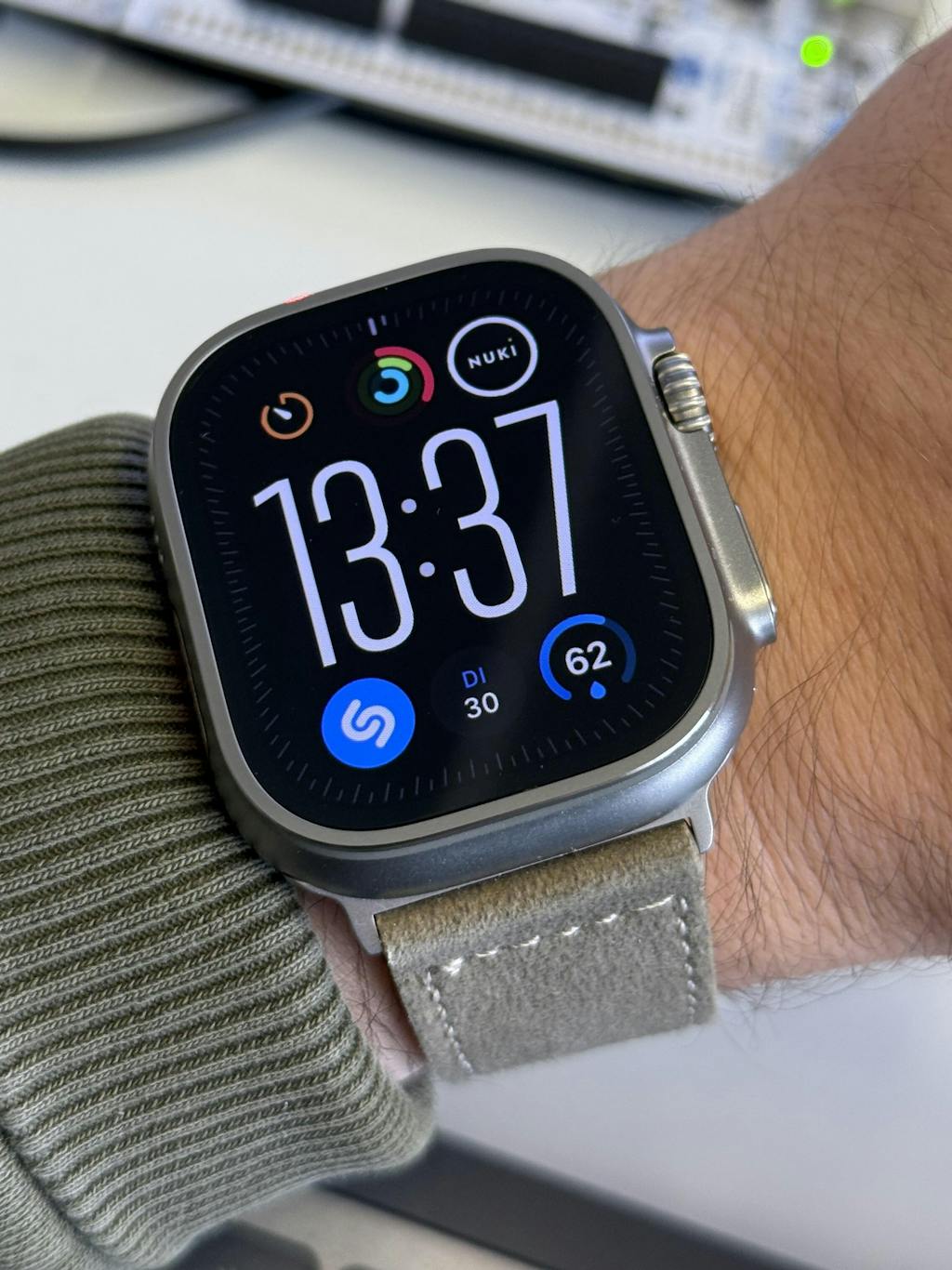 Die altsämische Gerbung macht das Leder unvergleichlich weich, langlebig und kupferresistent. Mit Titan-Adaptern und Titan-Schließe passt das 24 mm breite Band optisch und technisch perfekt zur robusten Apple Watch Ultra. Unterfüttert mit naturbelassenem, pflanzlich gegerbtem Rindleder für höchsten Tragekomfort.